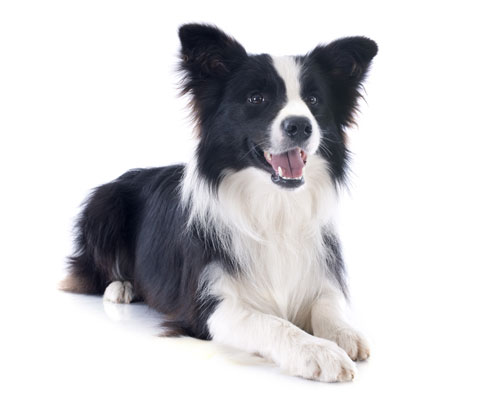 A border collie leggyakoribb színváltozata, a juhászok is ezt kedvelik a legjobban. A fehér minden más színnel együtt előfordul, jellegzetes collie-jegyekként: fehér csillag a homlokon, vagy a pofára is kiterjedő fehér szín, fehér nyakörv, fehér zoknik, harisnyák a lábakon, fehér mellkas és farokvég. Ha a fehér jegy a fejen nagyon széles, kiterjed a homlokra és a fejtetőre, akkor a juhászok az ilyen kutyákat gyakran Cap-nek hívták, ami sapkát jelent. De a szőrzet lehet foltos vagy pettyes is. Az ilyen kutyák gyakran úgy születnek, hogy szőrzetük fehér része kezdetben teljesen fehér, majd ahogy növekednek, kezdenek megjelenni a fekete – vagy más színű – pöttyök a fehér területeken. Az olyan kutyákat, melyeknek a fél feje teljesen fehér, félig fehér arcúnak hívják. A juhászok gyakran szándékosan választották ezt a mintázatot, ha két kutyával dolgoztak egyszerre: ha az egyik fekete volt, a másik pedig fehér fejű akkor messziről is meg tudták különböztetni őket.