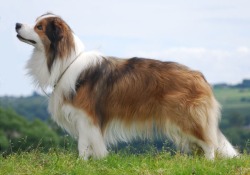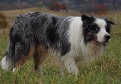Talán mondanom sem kell, ez az egyik legritkábban előforduló szín. Ez a szőrzet a trikolor és a merle keveréke. A merle jegyek, azaz a sötét foltok még kölyökkorában látszódnak, de ahogy cseperedik a kutya úgy olvadnak egybe a fekete foltok a világosabb területekkel. Az egyed sable szín hordozó, háttérbe szorítva a fekete színt hordozó gént, így kapjuk ezt a különleges szőrzetet.